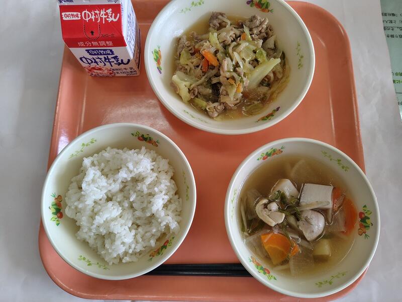 ごはん 豚肉のちゃんちゃん焼き いものこ汁 牛乳