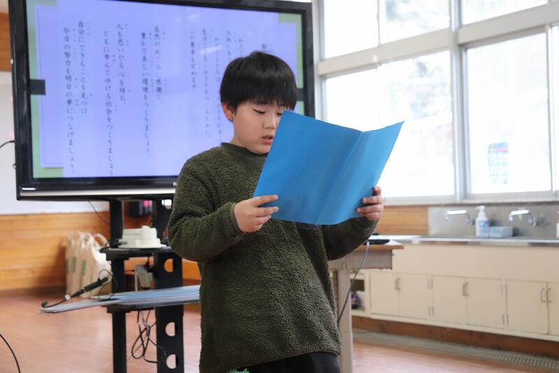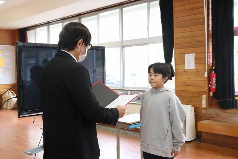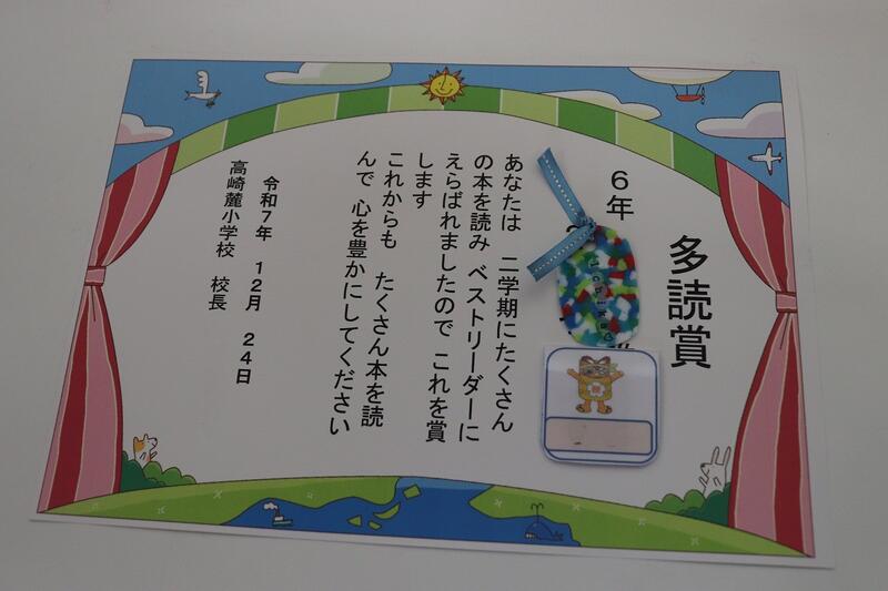 二学期の終業式を行いました。代表児童からは、学習や行事を通して成長できたことや友だちとの思い出が語られ、充実した二学期をふり返る発表がありました。校長先生からは、日々の努力を称えるとともに、新年に向けて目標をもって挑戦する大切さについてお話がありました。担当教諭からは、健康と安全に気を付け、規則正しい生活で冬休みを過ごすことの確認がありました。あわせて多読賞の表彰を行い、図書館サポーターの先生手作りの心温まる副賞が贈られました。三学期への意欲が高まる終業式となりました。