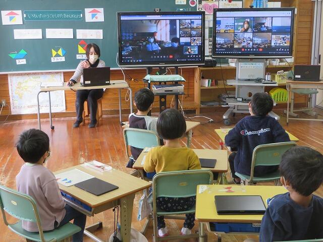 子どもたちは、町内の1年生(58名)とつながる、このオンライン授業をとても楽しみにしていました。「また いっしょにべんきょうしたいです。」「ほかの学校のはっぴょうがじょうずでした。」「ほいくえんのともだちにもあえて たのしかったです。」と感想を言っていました。