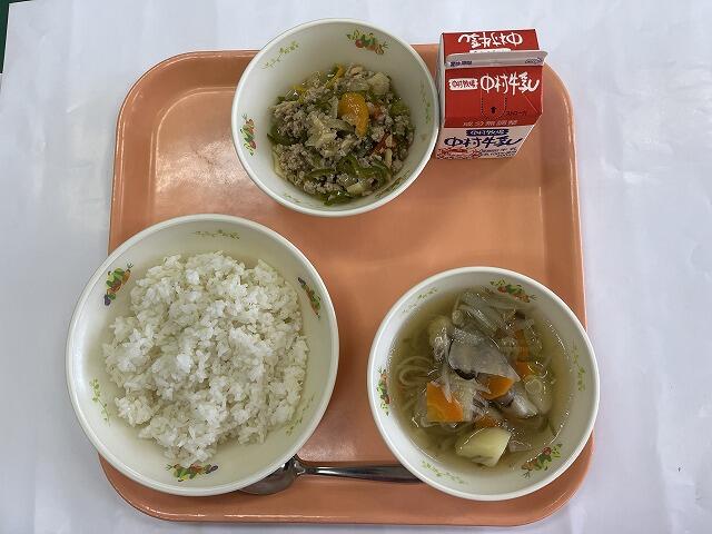 ごはん 北斗味噌炒め のっぺい汁 ミルクプリン 牛乳