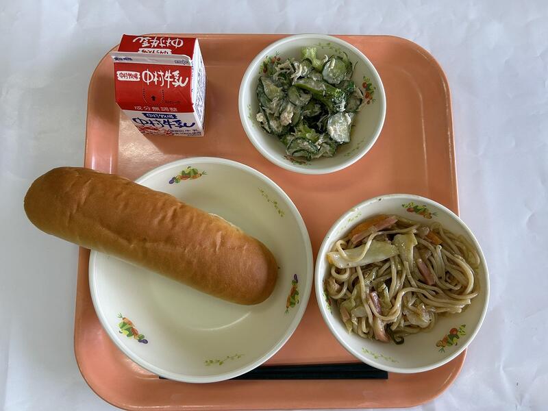 減量ミルクパン 焼きそば グリーンサラダ 牛乳