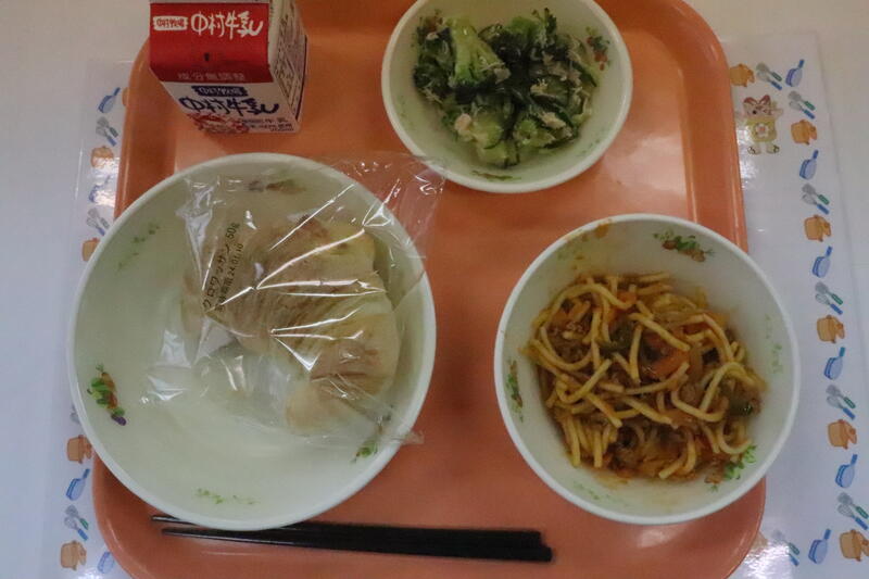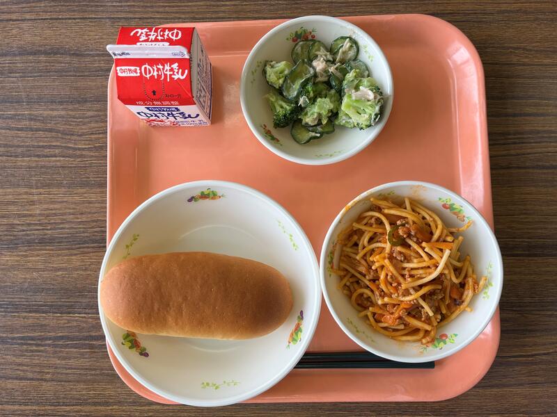 減量ミルクパン ミートソーススパゲティ ブロッコリーサラダ