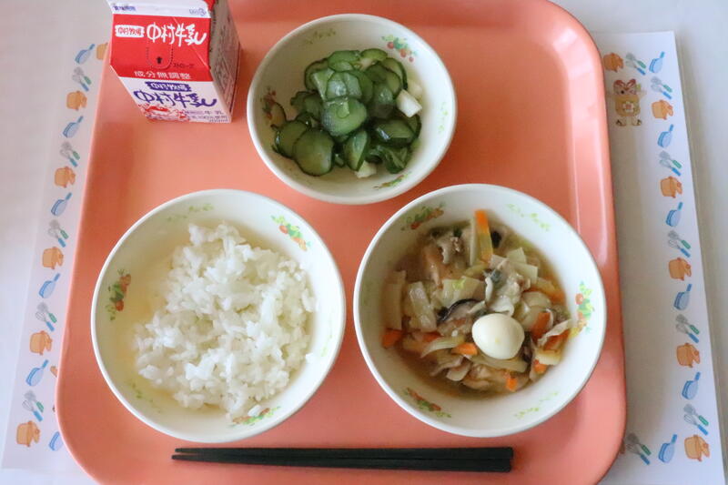 ごはん うま煮 きゅうりのこんぶあえ 牛乳
