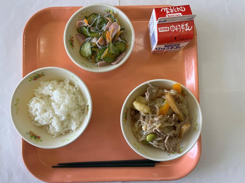 ごはん 肉じゃが 春雨サラダ 牛乳