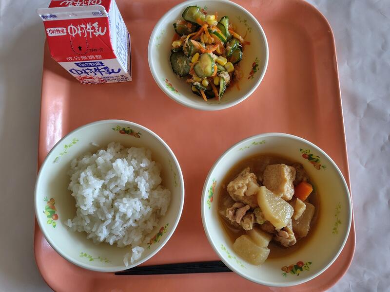 ゆかりごはん わかめうどん 大根のごま風味サラダ 牛乳