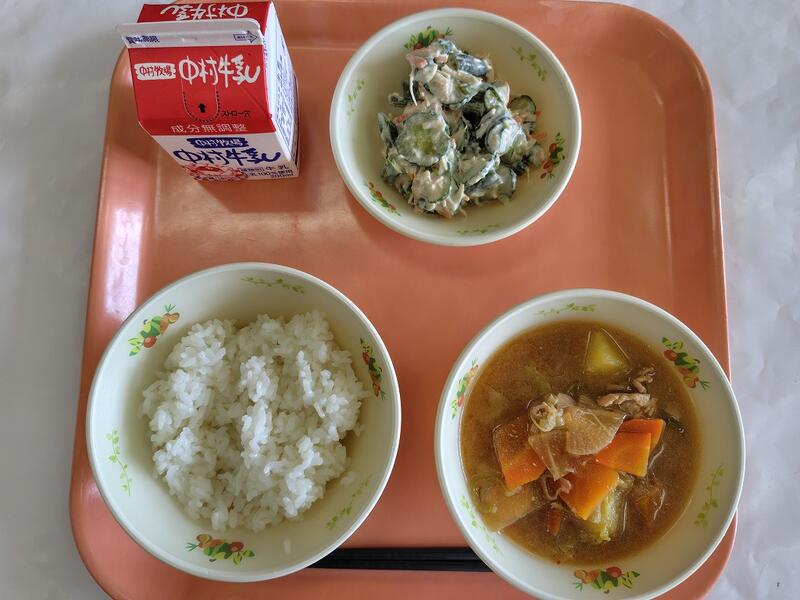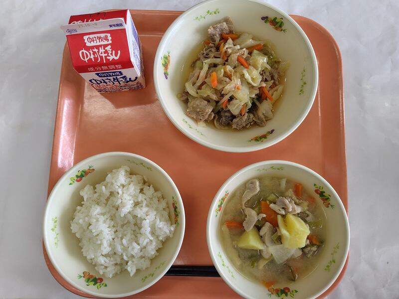 ごはん 豚肉と野菜のしょうが炒め さつま汁 牛乳