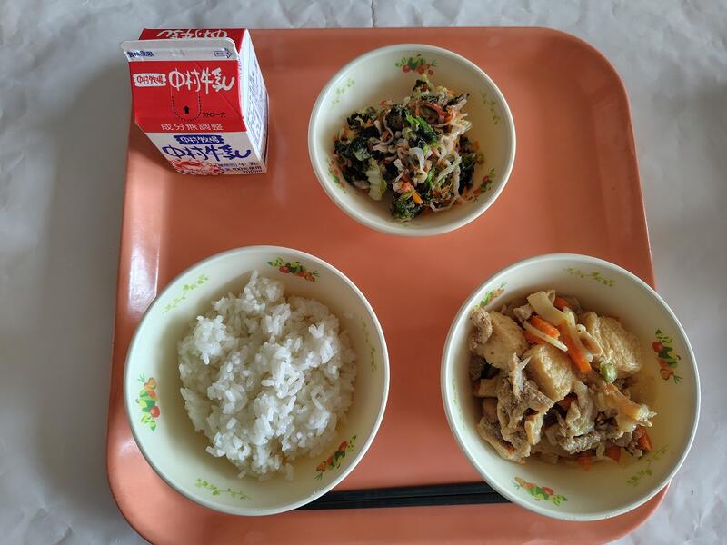 ごはん 豚肉と厚揚げの味噌炒め ほうれん草のおかか和え 牛乳