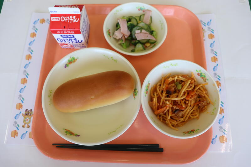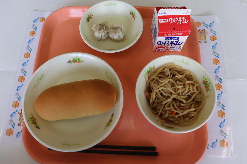 減量コッペパン、焼きそば、シューマイ、牛乳