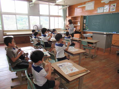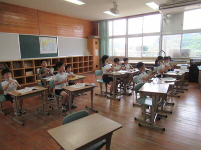 今日の音楽は、リコーダーを使う学習でした。3年生は、初めてリコーダーを使うので、おそるおそる息をリコーダーに吹き込んでいました。4年生は、手慣れていて、しっかりタンギングをしながらリコーダーで演奏することができていました。みんな素晴らしい姿勢です。1年生も初めての鍵盤ハーモニカの学習でした。