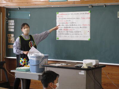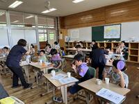 9月14日(木)の3校時に、教育実習に来ている小池先生の第1回研究授業がありました。学習内容は、算数で5・6年生の複式指導による授業を行いました。経験豊富な教員でも難しい複式指導ですが、小池先生は落ち着いて授業を進めていました。複式指導を経験することで、授業の流し方はもちろんですが、直接指導ができない学年への手立てなどを授業の組み立ての中で考えることができ、学びの多い研究授業になったようです。