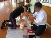 5月17日(水)に職員研修で心肺蘇生法の実践研修を行いました。プール開きに合わせて、子どもたちの命を守るために職員も毎年行っている研修です。皆さん、心肺蘇生法の仕方やAEDの使い方など、とても上手で講師で来られた消防署の方にほめていただきました。学校の玄関には、地域の方々も利用できるAEDが置いてあります。もしもの際は、利用されて大切な命を守る行動をしていただきたいと思います。
