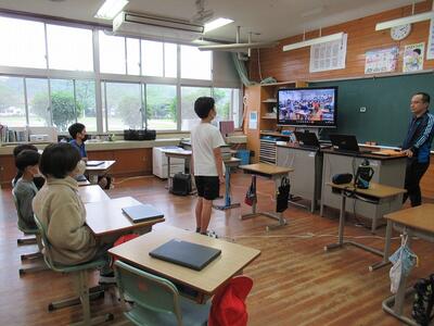 9月28日は、高崎麓小学校の創立記念日です。昨年度は150周年記念式典を行いました。今年は、151年目を迎えます。今年の創立記念日は、他県で活躍をされている高崎麓小学校の卒業生をZOOMでつないで、交流を行いました。在籍当時の話や今も昔も続いている「俵踊り」「駅清掃」などの話も出て,子ども達は興味深く耳を傾けていました。また、子ども達の質問にも答えていただき、みんな積極的に手を挙げて質問をしていました。
