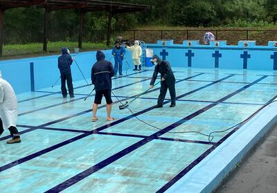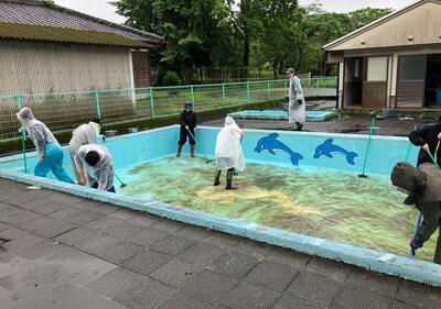 6月11日(日)午前7時から雨の中PTAによる奉仕作業がありました。今回は、13日(火)のプール開きに向けて、プール掃除を行いました。雨の中での作業でしたが、PTA会長を中心に皆さん一生懸命に作業をしていただき、約1時間で終了することができました。これで、きれいになったプールで子どもたちも、気持ちよく水泳の学習ができそうです。ありがとうございました。次回からは、子どもたちと職員でやっていきます。