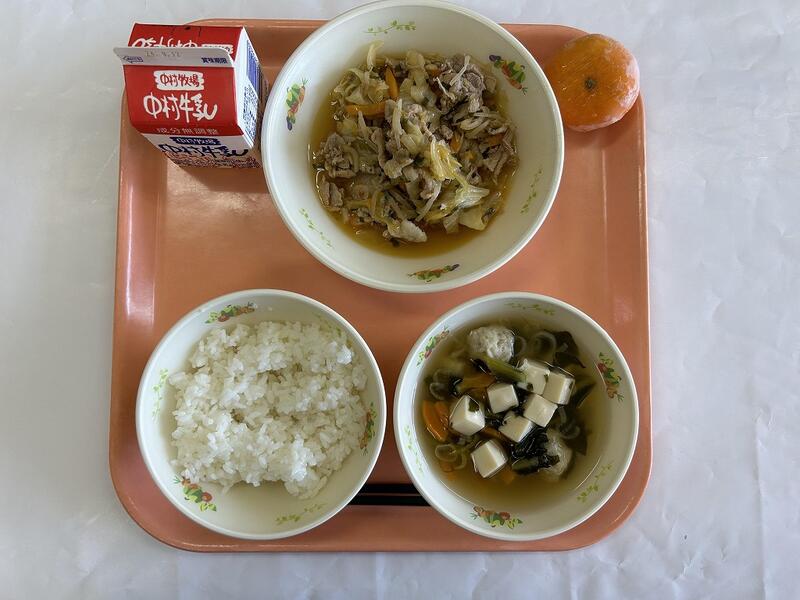 ご飯 つみれ汁 豚キムチ 冷凍ミカン 牛乳