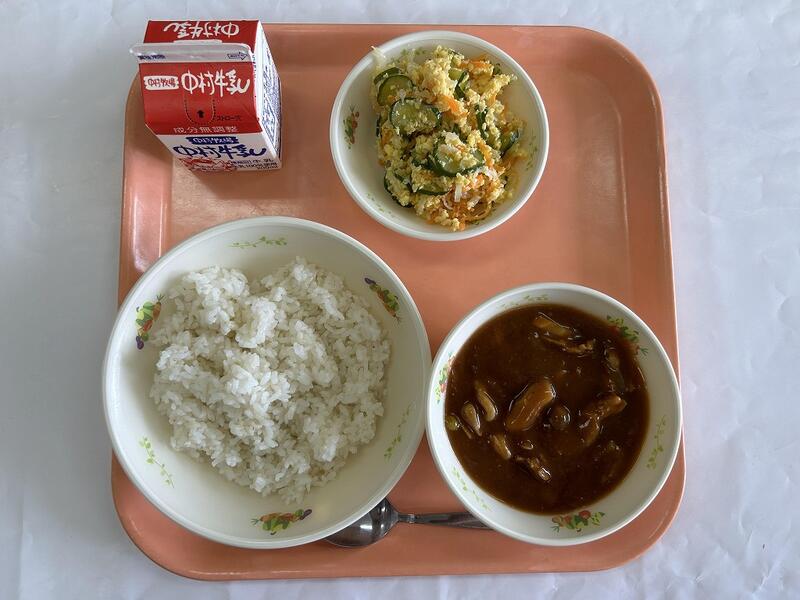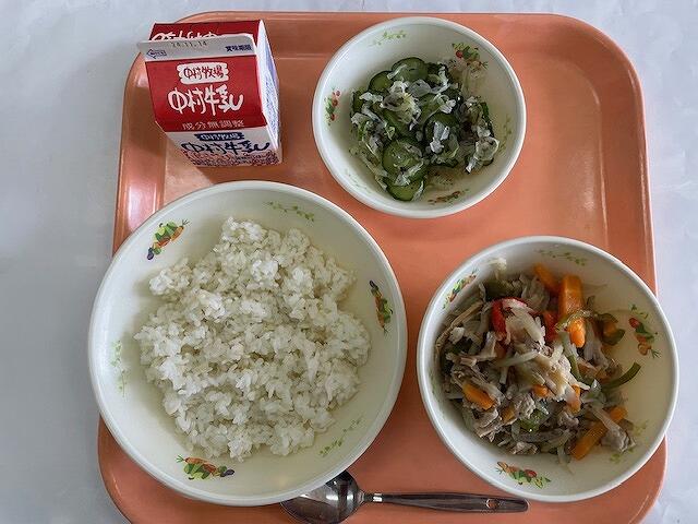 ご飯 野菜のピリ辛煮 たたき胡瓜 牛乳