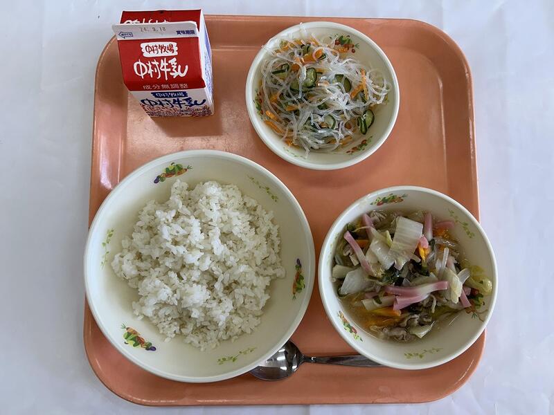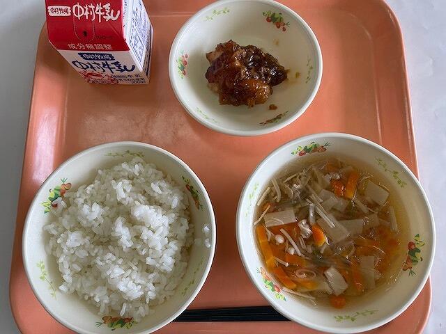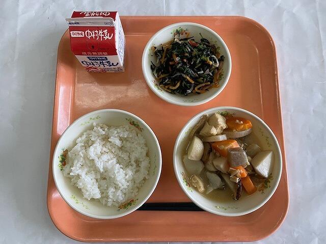 ご飯 野菜のごま汁 千切り大根のイリチー 牛乳