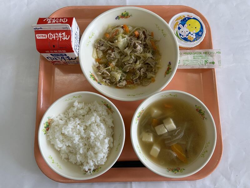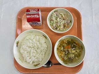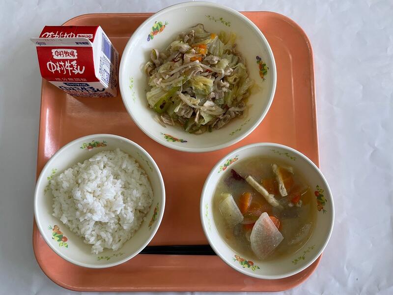 ご飯 豚肉と野菜の生姜炒め 薩摩汁 牛乳