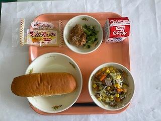 減量ミルクパン ラーメン からあげ ブロッコリー みかんクレープ 牛乳