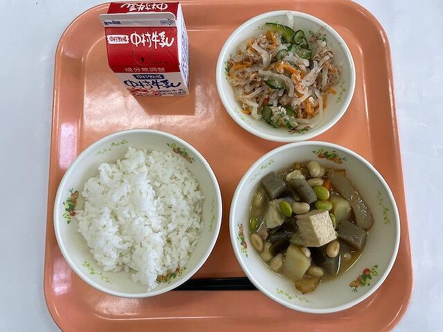 ご飯 イワシの生姜煮 胡瓜のおかか和え 味噌けんちん汁 牛乳