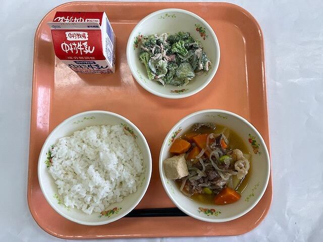 ご飯 肉じゃが ブロッコリーのマヨネーズ和え 牛乳