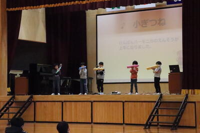 創立150周年の記念式典での、俵踊りや合奏・合唱の発表もあったので、短い期間で発表が重なり大変だったと思いますが、音読劇、合奏・合唱、生活科の発表と学習の練習がよく分かる内容でした。2年生になって大きく成長したことが感じられました。2年生、とても頑張りました。保護者や地域の皆様からの温かい励まし、ありがとうございました。これからも子どもたちの成長がとても楽しみな発表になりました。