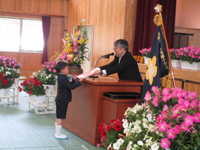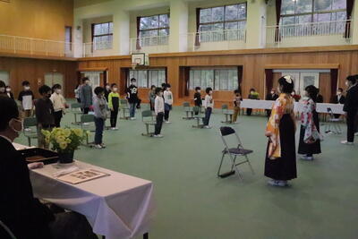 4月11日(火)入学式が行われました。令和5年度は1名の1年生が入学しました。1名でしたが、返事とお礼の言葉をしっかりと言うことができました。在校生の子どもたちは、式の中で歓迎の言葉を言ったり、プレゼントを渡したりと、1年生の入学を全員でお祝いしました。これからも全員で仲良く、楽しく学校生活を送ってください。