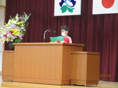 3月24日(金)修了式がありました。最初に、4年の児童が、作文を発表しました。次に各学年の代表が、修了証を校長先生から受け取りました。1年間、すべての児童が頑張る姿をたくさん見せてくれました。4月7日の新学期がとても楽しみです。