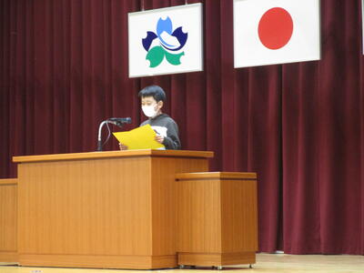1月10(火)に、3学期がスタートしました。朝の登校から元気のよい子どもたちの挨拶が聞こえてきました。1時間目に始業式がありました。2年の帆純さんと5年の愛哩依さんが、3学期頑張ることについて発表をしました。3学期は約50日しかない短い学期ですが、まとめの時期であったり次の学年の準備の時期でもある大切な学期です。発表してくれた2人のように、目標をしっかりとたて、その目標を達成するために日々の学習や生活を頑張ってほしいと思います。