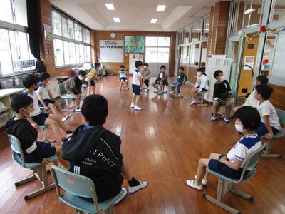 4月14日(金)の2時間目に「1年生をむかえる会」を全校で行いました。企画・運営は5・6年生が担当しました。まず、最初に自己紹介を行いました。1年生の児童も自分の名前や好きなものについてしっかりと発表することができました。次に「はないちもんめ」「フルーツバスケット」「イス取りゲーム」などを行い、全校で1年生の児童との交流を行いました。1年生をむかえる会では、子どもたちの楽しそうな笑い声や笑顔をたくさん見ることができました。