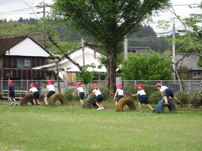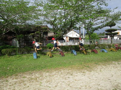 今年度も、体力向上を目的に、週1回木曜日の朝「ぐんぐんタイム」を設けました。1学期は、学校の遊具を使いながらのサーキットトレーニングに取り組んでいます。全校児童目標を決めて、一生懸命に取り組んでいます。ぐんぐんタイムが終わった後は、子どもたちは、汗をいっぱいかいています。1年間続けることで、子どもたちの体力を向上させていきたいと思います。