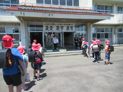 集団登校指導を行いました。