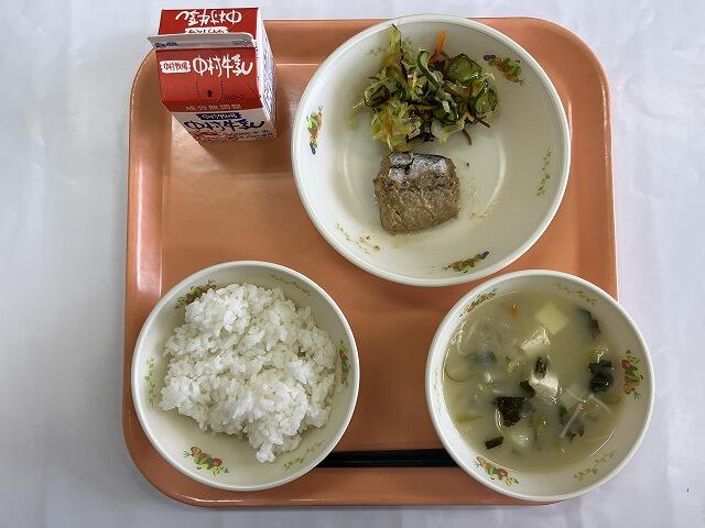 ごはん さば柚子味噌煮 野菜の昆布和え 豆腐の味噌汁 牛乳