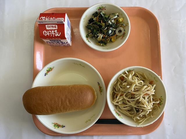 減量ミルクパン 和風スパゲティ コールスローサラダ 牛乳