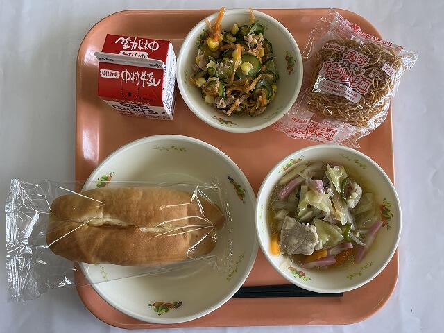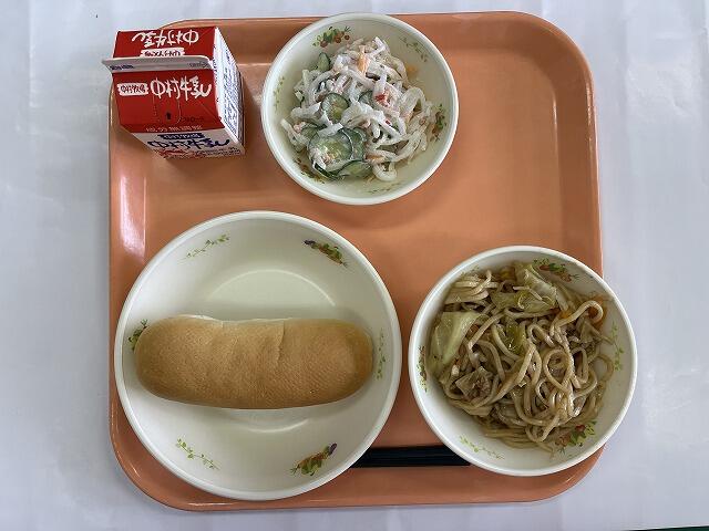 減量ミルクパン 焼きそば グリーンサラダ 牛乳