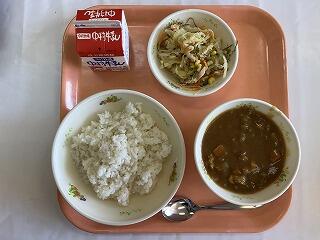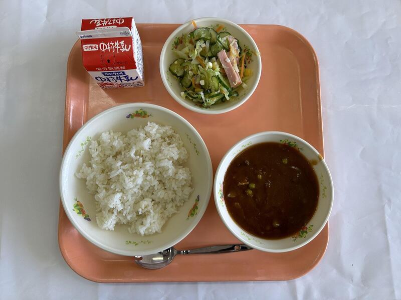 チキンカレー ハムサラダ 牛乳