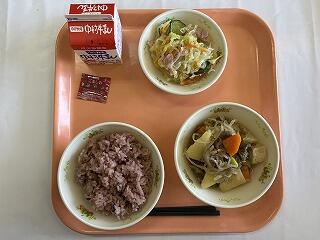 赤飯 肉じゃが 春雨サラダ 1食ごま塩 牛乳