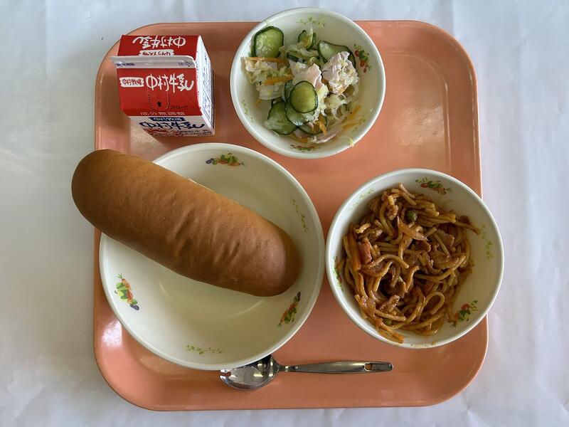 減量黒糖パン スパゲッティナポリタン フレンチサラダ 牛乳
