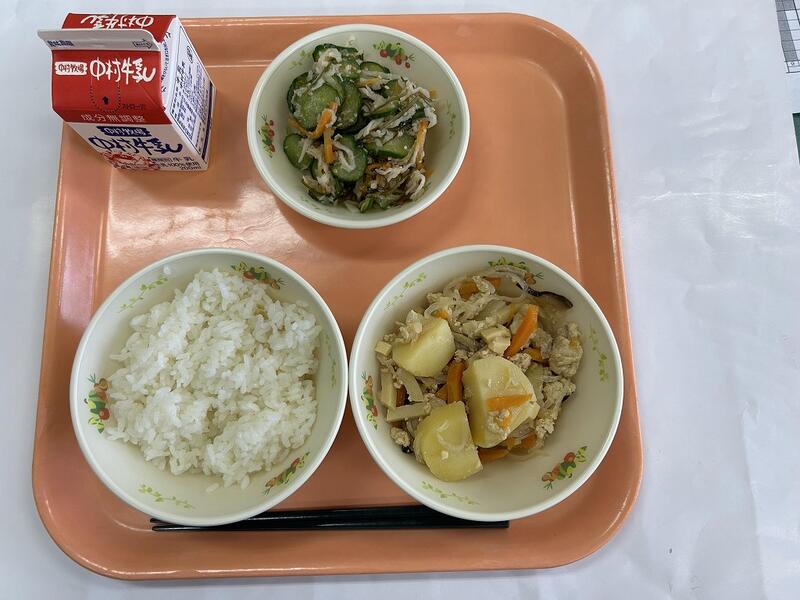 ご飯 肉じゃが 胡瓜のおかか和え 牛乳