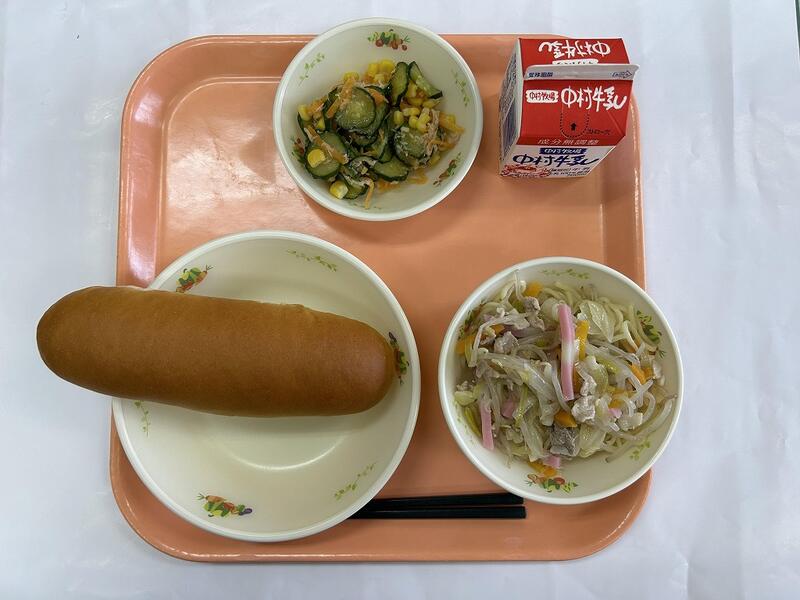 減量マヨネーズパン 皿うどん ツナサラダ 牛乳