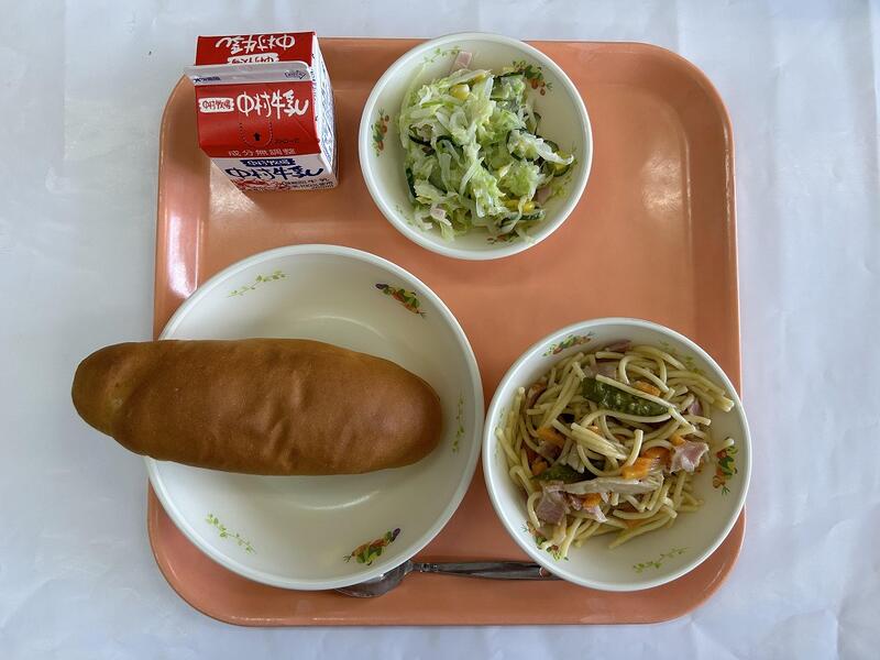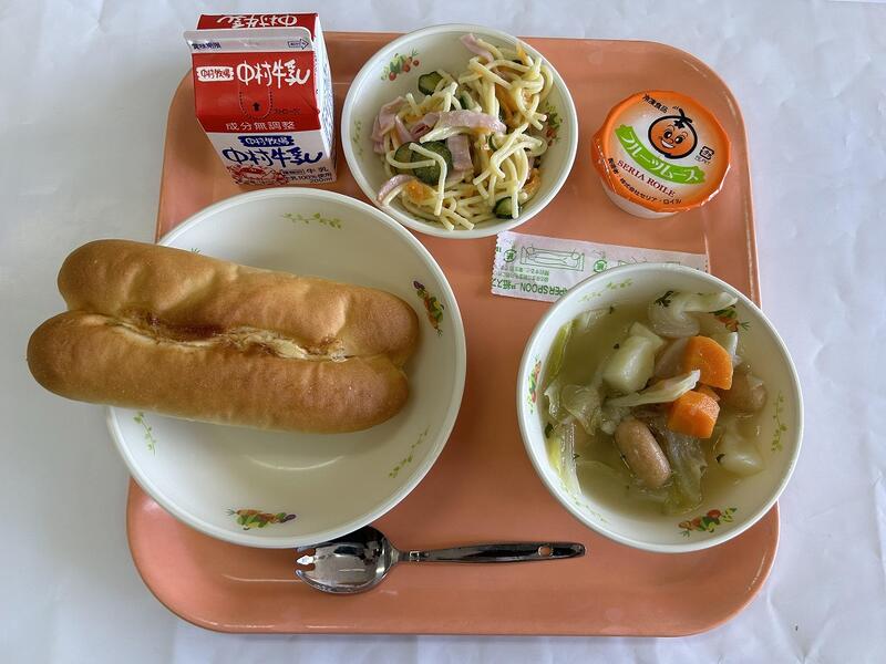 マヨネーズパン ポトフ スパゲティサラダ フルーツムース 牛乳