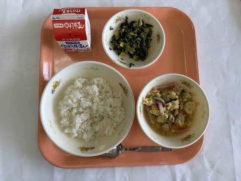 ごはん 豚骨煮 ほうれん草のおかか和え 牛乳