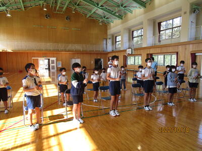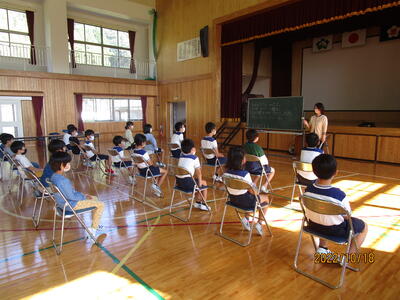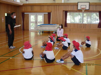 10月11日(火)の3校時に、都城農業高校の保健体育科の先生が来校されて3・4年生のマット運動の指導をしていただきました。子どもたちは、専門の先生の指導ということもあり、とても楽しみにしていました。今年度体育振興指導教員派遣事業として、5回程指導に来て下さる予定です。昨日はオリエンテーションということで、マット運動だけではなく、様々な運動を指導してくださいました。子どもたちも楽しく汗をかいていました。次回の指導も楽しみです。