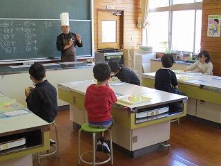 10月18日(火)の3校時、3・4年生が「味覚の授業」を行いました。五感を使って味わうことの大切さや楽しさを専門家の方の知識とともに体感することで、食に興味をもつことができることを目的とした授業です。講師に、シェフの地井 潤(ちい じゅん)様をお招きしました。実際に甘味、酸味、苦味、塩味、旨味の五味を味わいました。また、味の組み合わせによって料理ができることや、酸味や苦味はどうして子どもたちの苦手な味なのか等についても話を聞きました。子どもたちは、進んで発表し楽しく学習できました。