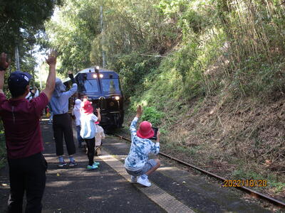 10月20日(木)に『ななつ星』が通るという情報が入り、全校で見に行きました。近くでななつ星が見られるということもあり、子どもたちは、とても大喜びでした。ななつ星が通る時間は、短かったのですが、子どもたちはしっかりとタブレット・パソコンに記録し、ななつ星が通り過ぎてからはみんなで撮った動画を確認していました。次の通過も楽しみです。