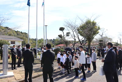 今回の式典は、子どもたちの発表の場面が多かった内容でした。先生方の指導と子どもたちの練習の頑張りで、よい発表ができました。来賓の方々からも「よい式典だった」「子どもたちの姿を見て、涙が出てきました」等たくさんのお言葉をいただき、本当にうれしく思いました。