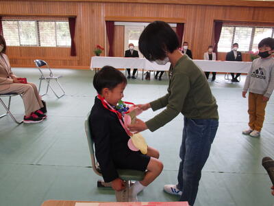 4月11日(火)入学式が行われました。令和5年度は1名の1年生が入学しました。1名でしたが、返事とお礼の言葉をしっかりと言うことができました。在校生の子どもたちは、式の中で歓迎の言葉を言ったり、プレゼントを渡したりと、1年生の入学を全員でお祝いしました。これからも全員で仲良く、楽しく学校生活を送ってください。