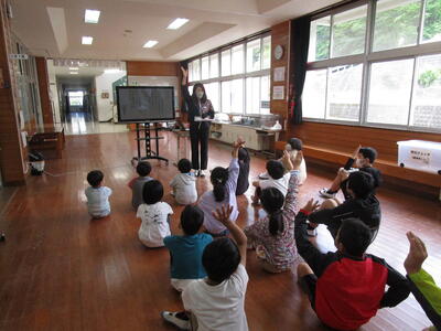 4月14日(金)の2時間目に「1年生をむかえる会」を全校で行いました。企画・運営は5・6年生が担当しました。まず、最初に自己紹介を行いました。1年生の児童も自分の名前や好きなものについてしっかりと発表することができました。次に「はないちもんめ」「フルーツバスケット」「イス取りゲーム」などを行い、全校で1年生の児童との交流を行いました。1年生をむかえる会では、子どもたちの楽しそうな笑い声や笑顔をたくさん見ることができました。