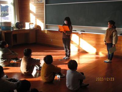12月23日(金)は2学期の終業式でした。最初に、3年の日愛さんと6年の美結さんが2学期頑張ったことについて発表しました。2学期は行事が多く忙しい毎日でしたが、そんな中でも勉強や行事を通して頑張ったと感じることができた学期だったようです。また、2学期の多読賞の表彰もありました。進んで読書をする児童たちが、たくさんおり、みんなのお手本になっていました。