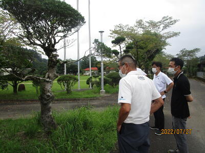 7月27日(水)に予定していた150周年記念事業実行委員会を中止し、縮小して実行委員長さんと地区公民館長さんと学校とで、記念碑などについて協議・検討をしていきました。記念碑を建てる場所を確認し、早速、松永林業さんに来ていただき、整地を依頼しました。11月6日の式典等に向けて着々と準備が進んでいます。子どもたちや、地域の方や来賓の方が150周年という高崎麓小のすばらしい歴史を感じていただければと思います