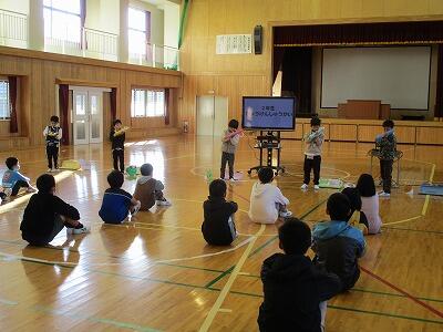 2月24日(金)は、今年度最後の参観日がありました。はじめに各学年の発表がありました。2年生は、作文、鍵盤ハーモニカ、できることになったことの発表をしました。3・4年生は、合奏と総合で調べた地域のことを発表しました。5・6年は、1年間の思い出作文と合奏を披露しました。各学年の発表が終わった後、全校で縄跳びの技の披露を行いました。体育やぐんぐんタイムの時間に練習してきたすごい技を保護者や地域の方々に披露し、地域の方々からは「すばらしいですね。」という感想をいただきました。子どもたちの1年間の成長を実感できる参観日になってよかったです。